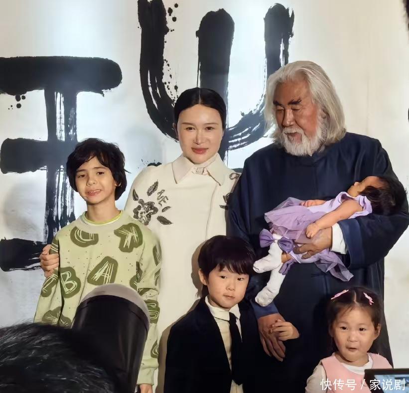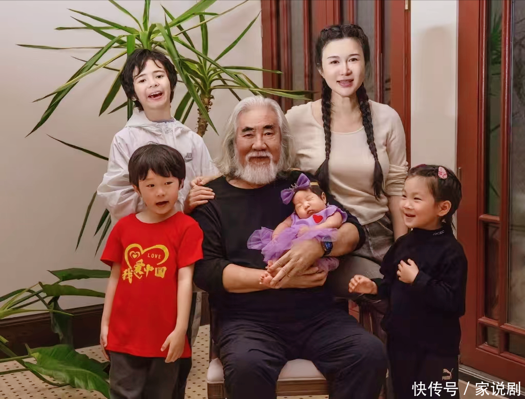 这不,时辰一瞥眼,张纪中的配头杜星霖出月子了,11月18号一大早,张纪中就发了他四胎宝贝女儿的朔月照以及全家福,只见一头鹤发的张纪中坐在椅子上,怀抱穿戴紫色小裙子的女儿,三个孩子依偎在他身边,内助杜星霖则扎着两个大麻花辫,坐在椅子的扶手上,右手搭着张纪中的肩膀,一家五口其乐融融。