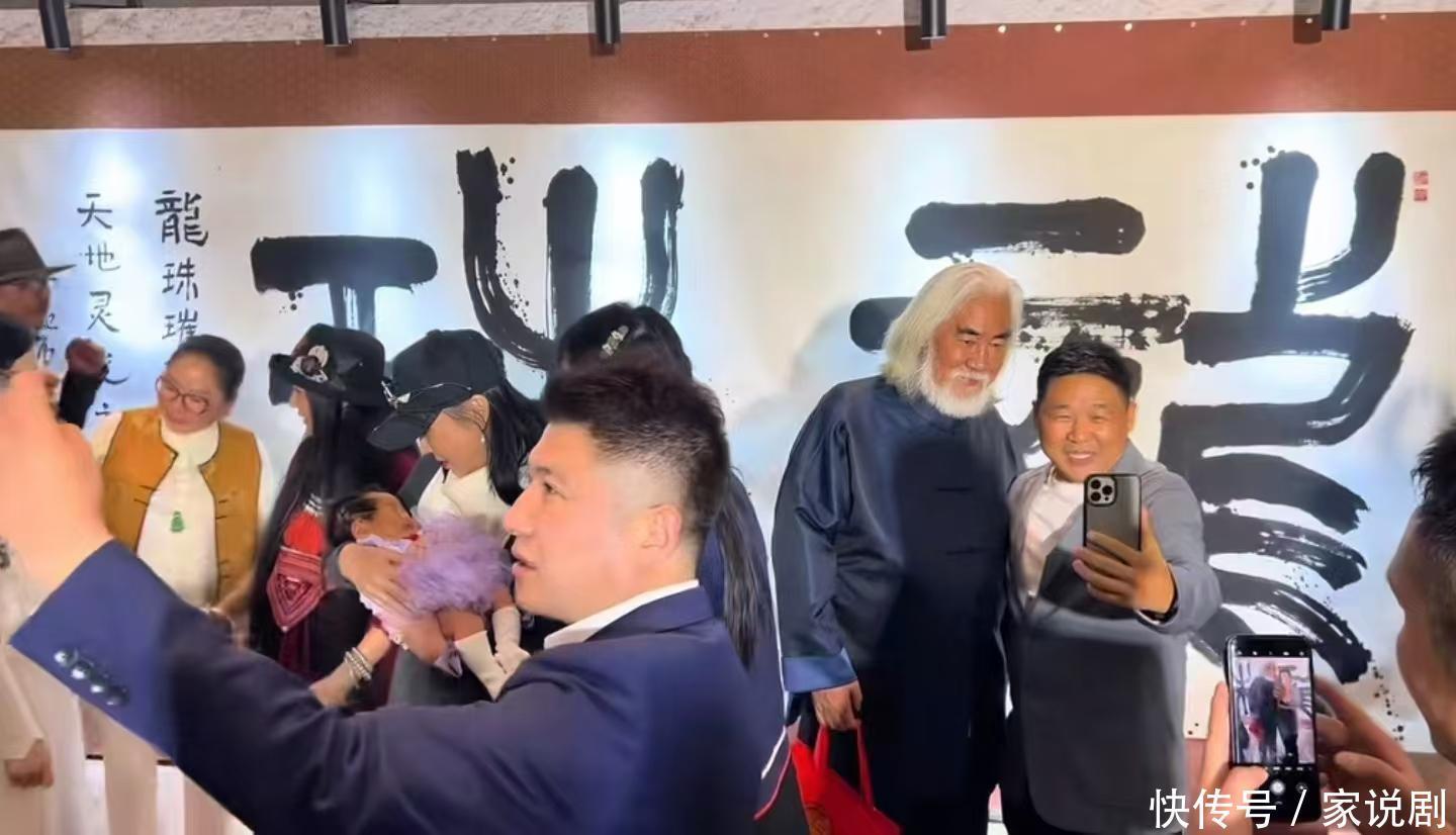 来宾们到了饮宴场,率先即是跟这幅大字合影,就像打卡一般,每东说念主齐照许多张。